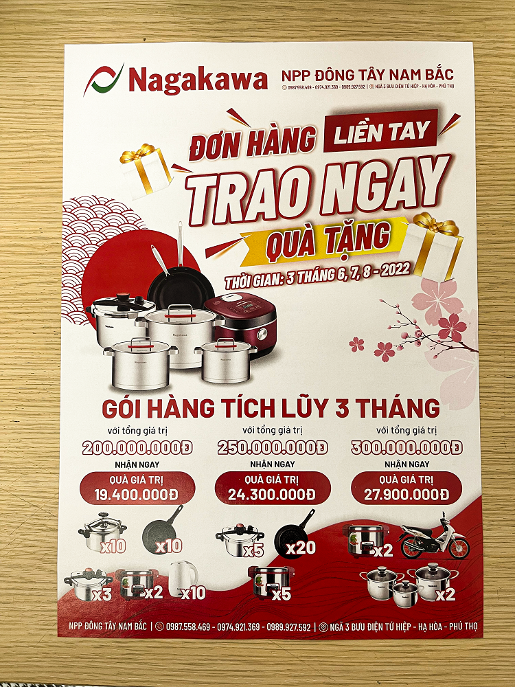 • Qui cách: In 4 màu, in 1 hoặc 2 mặt, không cán hoặc cán bóng/cán mờ, xén thành phẩm