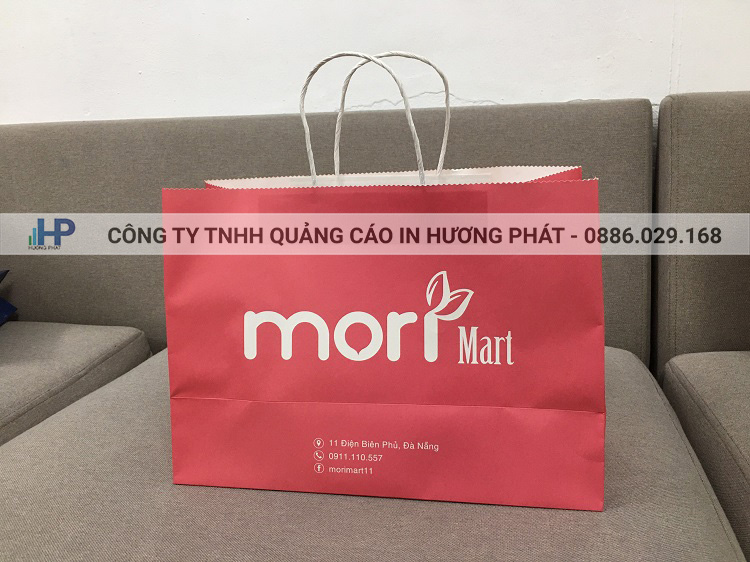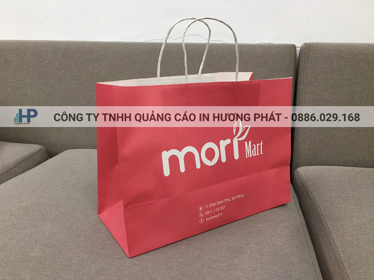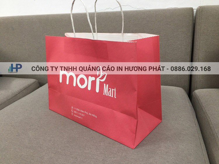 • Qui cách: In 4 màu, không cán, bế dán thành phẩm, quai dù bằng giấy